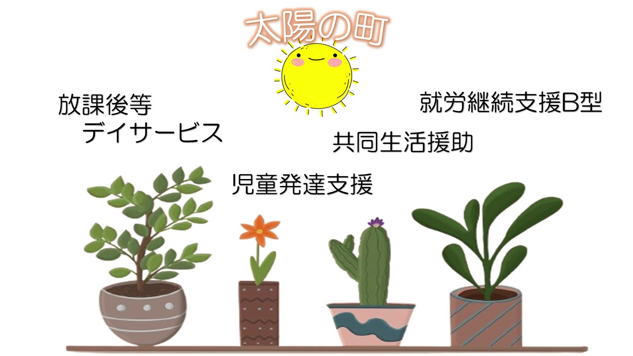 太陽の町では、就学児童・生徒(小学生~高校生)の障がいのある子供達を対象とし、「放課後等デイサービス」を通して障害のある子供たちが安全、安心の中でさまざまな学習や経験を楽しみながら出来る場としていきたいと思います。