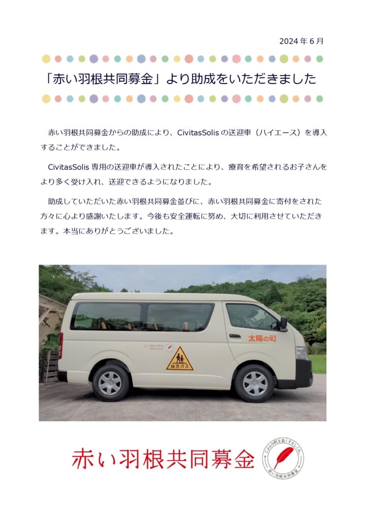赤い羽根共同募金より助成をいただいて、新しい送迎車を導入しました。